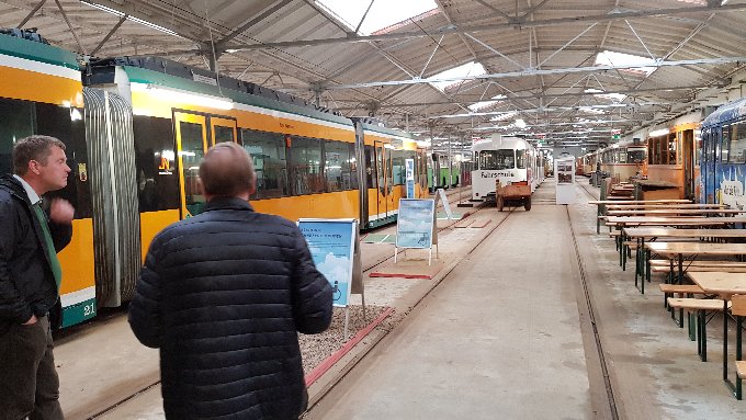 En af de flotte haller hvor sporvogne stod opstillet med god plads imellem så man rigtig kunne beundre og fotografere dem |